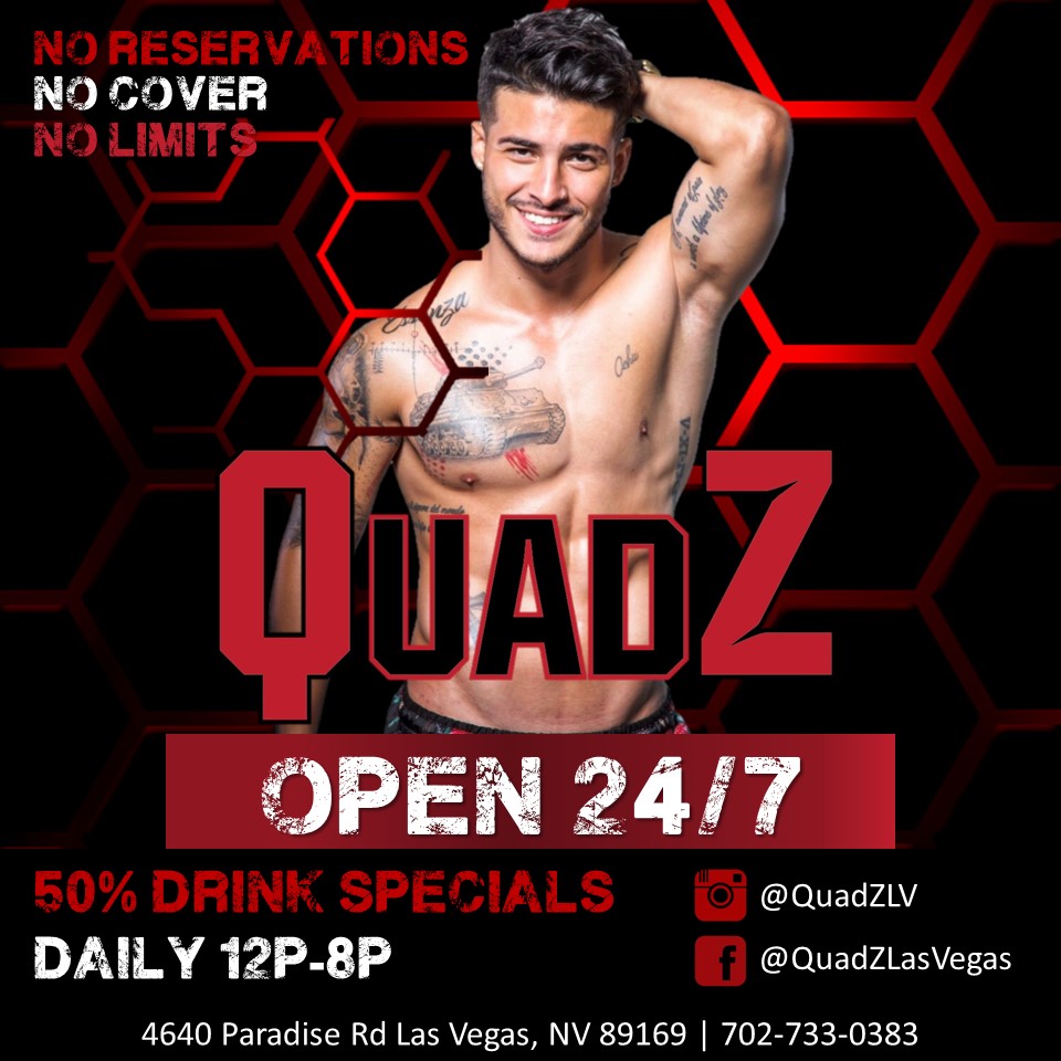 We are Las Vegas’ late-night leader! Located in the Fruit Loop, we are open 24/7 and the party never stops at Quadz! Known for our fun and energetic late-night environment, we are a favorite hangout for locals and a must-stop destination for any visitor. We never charge a cover, and we feature great music and cheap drinks. Don’t forget to order a “Trash Can” when you’re here – this signature cocktail will be a memorable experience for anyone’s visit. Stop by during the day from noon-8pm and take advantage of our Happy Hour – 50% OFF our drink specials – or play a round of pool with your friends. Try your luck on one of our Las Vegas Video Games, we have some of the loosest machines around! But, no matter what you do get here at Quadz, you’re guaranteed to have a fun time!